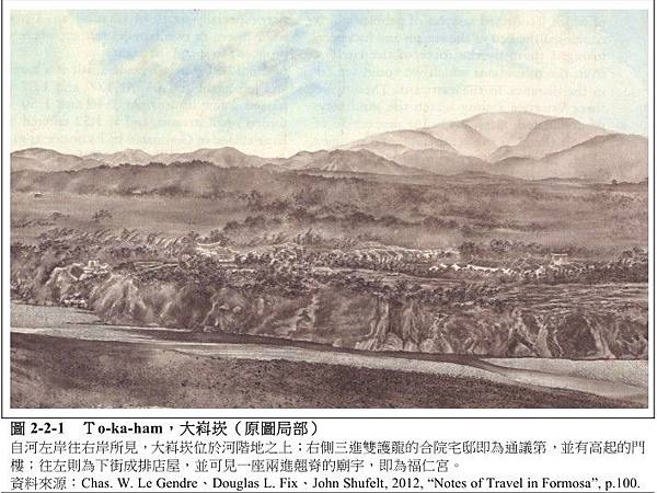 1901年,大嵙崁城堡城門,位於今天桃園大溪。這裡是板橋林家的發源地,林氏為福建漳州人,在早期移民社會中,因與泉州人械鬥衝突,又由於與泰雅族傳統領域接壤,時有衝突。1820年代道光年間遂於大溪築堅固的石頭城堡(位置在今天運動公園與大溪國小一帶。牆高壁厚,占地3甲餘,因上一輩由朝廷賜封通議大夫,號稱「通議第」,展現官府大宅的氣派。閩粤百姓在閩粵山區地帶,因地方政府行政力薄弱,土著和少數民族反抗,常見以氏族為聚居單位興建土樓和圍籠屋,作為防禦之用。不過,大嵙嵌城堡的規模遠大於彼,有如古代歐洲小王國的城堡。林氏族裔之衆多,財力之雄厚,可見一斑。(取自徐宗懋圖文館製作即將出版「台灣歷史珍稀影像1860-1960- 戰爭 庶民 風物」)