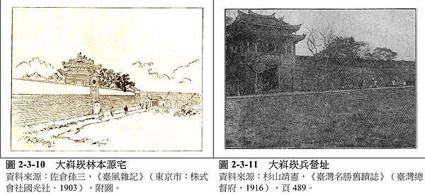 註:大正九(1920)年有市區改正計畫與大嵙崁(大溪)公學校擴建完成,導致石頭城大宅第部分被拆除,或許可供參考.但如圖之城樓何時消失,則待資料發掘佐證