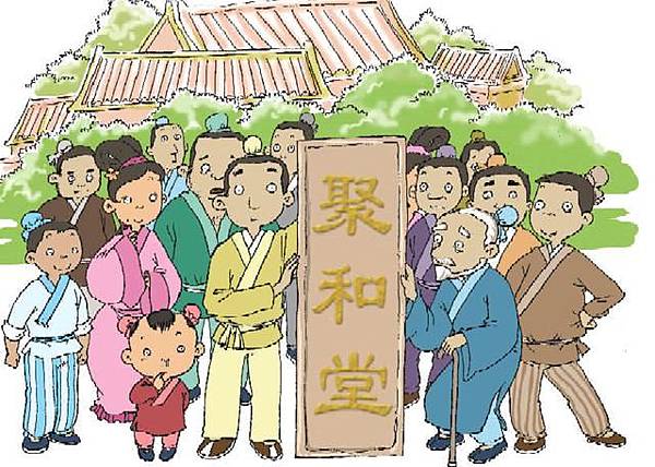 聚和堂的組織機構分為兩大系統:「教」和「養」。在教育方面,聚和堂首先創建了免費入學制度。吸收本族人和外族子弟入校學習。在聚和堂內設有率教、率養、輔教、輔養等一系列植物、各司其職,禮聘賢良授課。率教負責管理堂內的教育事務,而率養則負責管理經濟事務。學生入學,吃住都在學校,過着一種集體宿舍般的生活。在學校里,大家待遇,地位互相平等,共同學習禮教。共享學習之惠。另外,學堂還有祠首,大概類似於今天的行政主管。每月朔望,自率教以下十二人「,同祠首相聚一坐,樂觀子弟禮以相讓,文以相勖,歡如翕如,」即聚和堂的學堂,每半個月舉行一次茶話會。