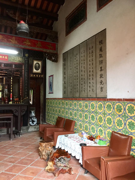 室內特徵室內樑來自福州木雕,壁上鑲雕花磁磚,廳堂壁有書法。