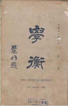 《學衡》是1922年成立的一份支持傳統中國文化的雜誌,在中華民國初年,儒家思想一時失去統治地位,歐美各種新文化思潮湧入中國,傳統文化受到衝擊。各種西方近世文化流端風靡一時,學衡派興起而刊行《學衡》雜誌,「樹立了一面旗幟分明的大旗,擔負起中流砥柱的重責大任」[1]。