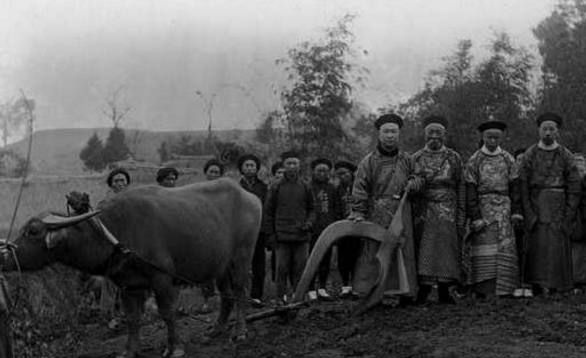 老照片:穿西装的溥仪一派绅士风度,晚清官员站在田里装作干农活
