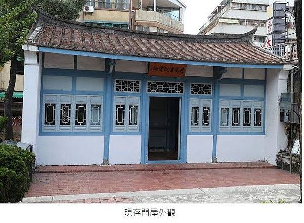 保存狀況:僅存臨赤嵌街蓬壺書院門廳。