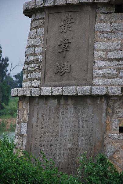 葉章者 乃葉君作霖與章君菊生之姓氏也 今特取之以命此湖 緣此湖之建 始於葉而成於章也 民國四十八年八月 葉君任陸軍第二十七師七十九團第二連連長 戍於此 因鑒此湖有軍事與經濟價值 乃毅然著手興建 不匝月而得工程之半 旋因奉命調防 乃將所餘工作交與接防之八十團第二連連長章君 章君秉承葉君之意志 旦旦而為 至十月中旬矢抵於成 此湖之足貴 非盡貴乎其有軍事與長遠經濟價值 乃貴於葉君有勇敢任事之初志 與章君有志紹期成之決心 至若其他足供研究之流體力學與海堤防洪之智識等等 則又其次也