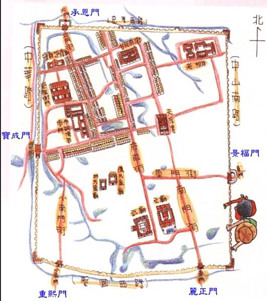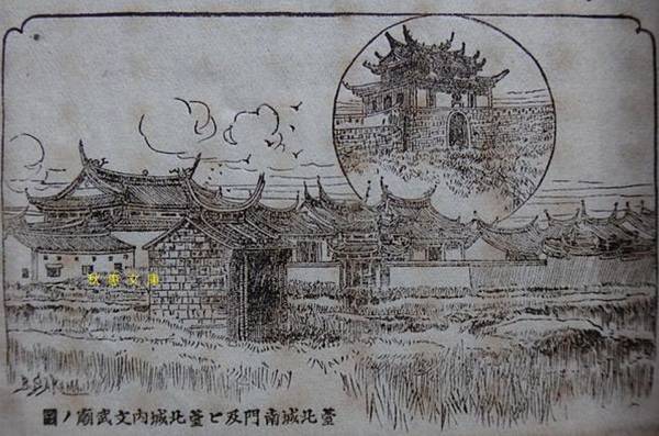 台北城南門及城內文武廟圖.文廟舊址為現北一女校舍,武廟則位於現重慶南路司法院與高等法院一帶. http://bit.ly/2IXgdTt