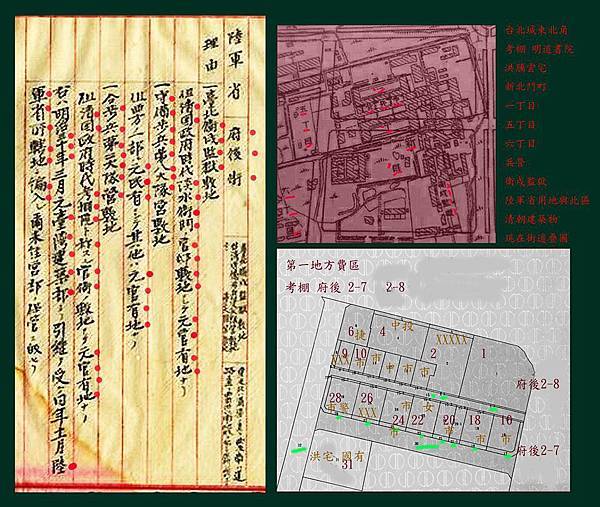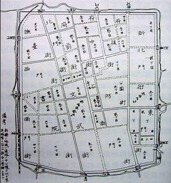 右圖打光部分就是文武町。從圖可以看到該町包含現在「二二八公園」、「總統府」到「中山南路」、「愛國西路」的範圍。