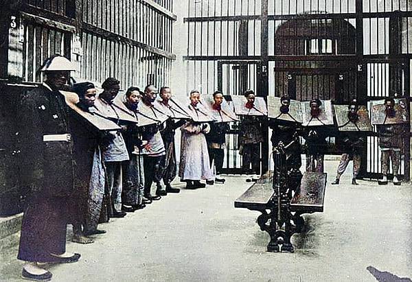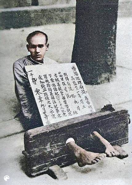 1900s年香港 110多年前 香港青年犯人,輕判監禁一年苦工,枷號三個鐘,再打籐和遊街示眾 。