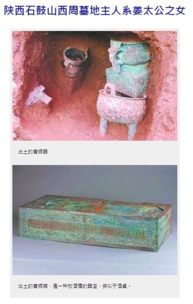 大陸陝西「寶雞市」有村民,四年前在寶雞「石鼓山」中,發現一個古墓群。經考古學家多年考證後,幾乎可以確定這個古墓群,主要葬下的是「姜太公」的女兒「邑姜」。