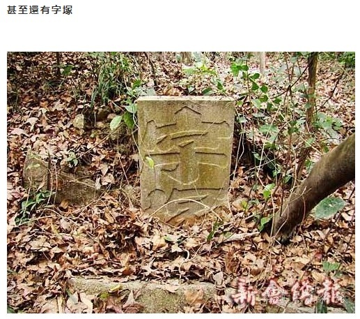「塚不單有葬人的,過去,還有葬字的、葬花的;顧名思義,‘字塚’埋葬的就是字——印在紙上的字。 」 它反映了古代先人對「字」的一種崇敬。