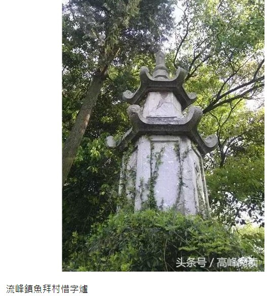 流峰鎮魚拜灘村的惜字爐建於清光緒八年(1883)。上有對聯「鴻文無漏藩,翰墨有餘香」。
