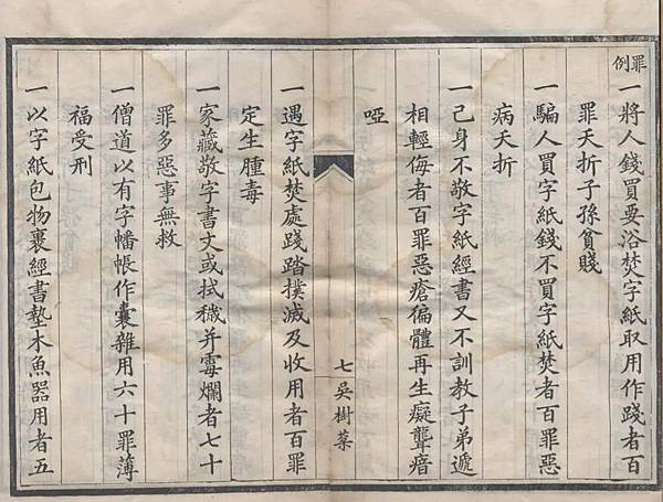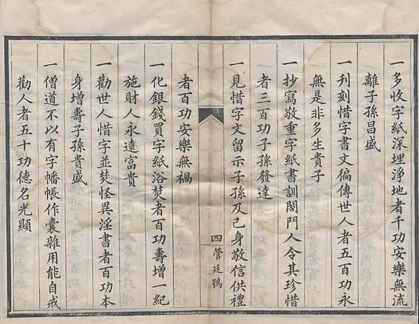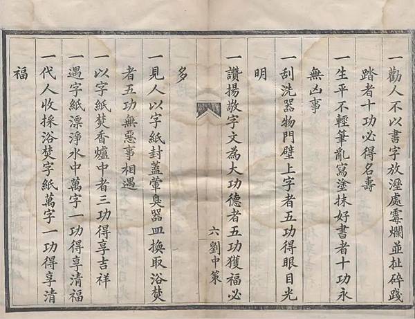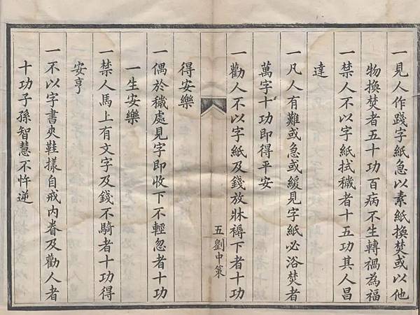 文字乃聖人創造,人人皆當敬惜。 文人瀆汙字紙,文曲星降罪,則進學無門,考試不第;常人瀆汙字紙,則瞽目變愚,撿拾者,功德無量,增福添壽。