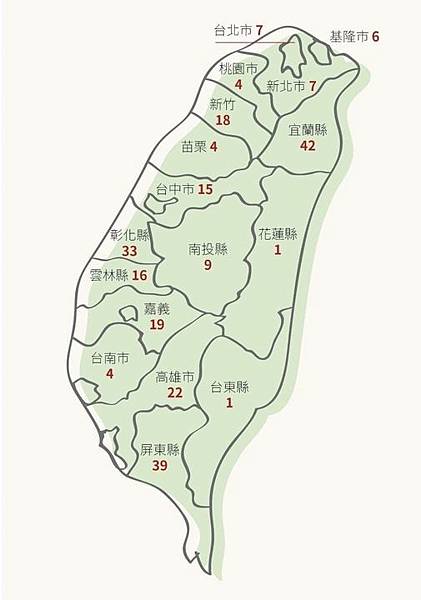 除了花東,三山國王廟最多者是宜蘭縣,其次屏東縣、彰化縣。最少的竟然是桃園及苗栗