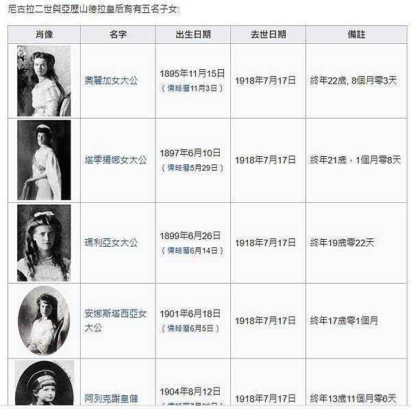 尼古拉二世與亞歷山德拉皇后育有五名子女: