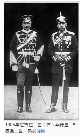 1905年尼古拉二世(右)與德皇威廉二世,攝於德國