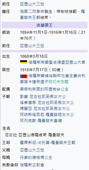 #俄國爆發十月革命,尼古拉二世家族被 #布爾什維克軍隊逮捕,1918年7月16日深夜或7月17日凌晨,尼古拉二世家族包括和他們在一起的僕人近10人被領至一廢棄教室內,#士兵架起機關槍瞄他們全家集體處決。事後他們的屍體被澆上硫酸和汽油銷毀,殘餘骨渣被埋藏在葉卡捷琳堡地區的一個廢棄洞穴中。