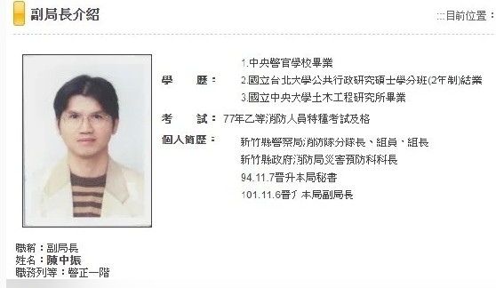 新竹縣消防局副局長陳中振涉貪汙罪嫌,今天被檢方聲請羈押禁見。圖/取自縣消防局網站竹縣消防局副局長涉貪 竹檢搜索辦公室並聲押禁見獲准 | 法律前線 | 社會 | 聯合新聞網 https://bit.ly/3dsP88V