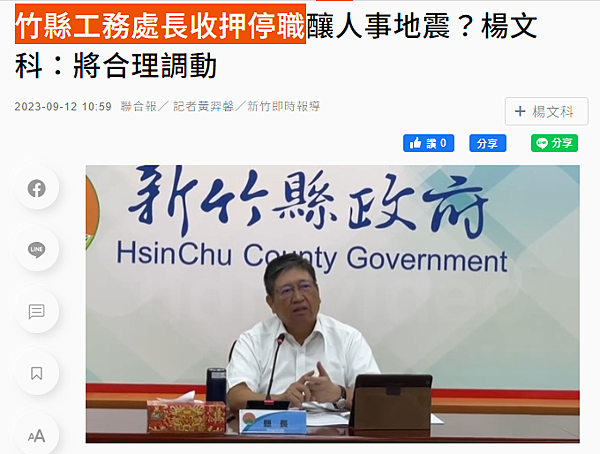 竹縣工務處長收押停職釀人事地震?楊文科:將合理調動 | 桃竹苗 | 地方 | 聯合新聞網
