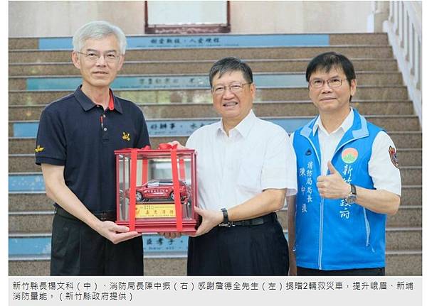 感念曾祖父樂善好施 科技公司處長捐救災車助峨眉、新埔 - 生活 - 自由時報電子報