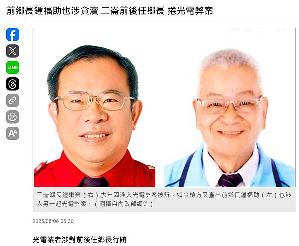 前鄉長鍾福助也涉貪瀆 二崙前後任鄉長 捲光電弊案 - 社會 - 自由時報電子報 https://bit.ly/3EQvq9E