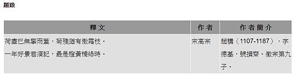 1.《贈劉景文》:此詩乃東坡 寫贈 給好友 劉景文〈詩題 亦作 《冬景》〉,是蘇軾於宋哲宗 元佑五年(西元1090年)任杭州太守時所作。