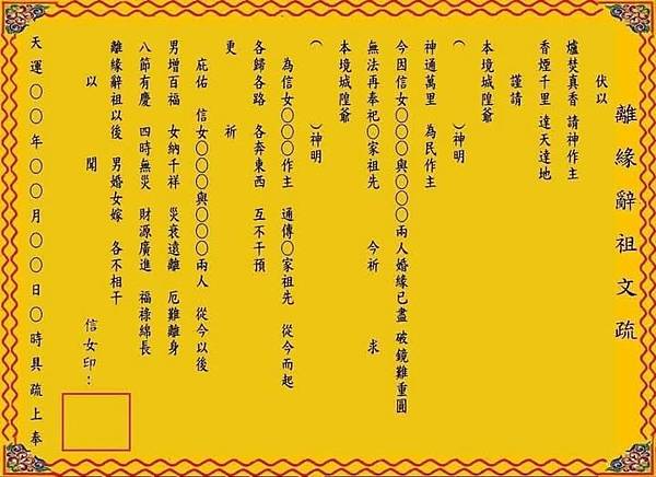 『四大開明,天地為常,玄水澡穢,辟除不祥。雙童守門,七靈安房。雲津鍊灌,萬氣混康。內外利貞,保滋黃裳。急急如律令。』(12)