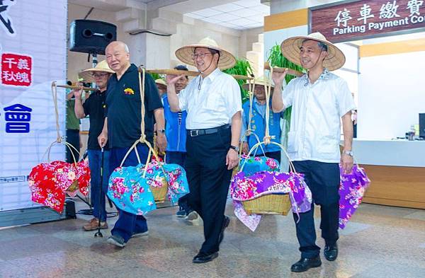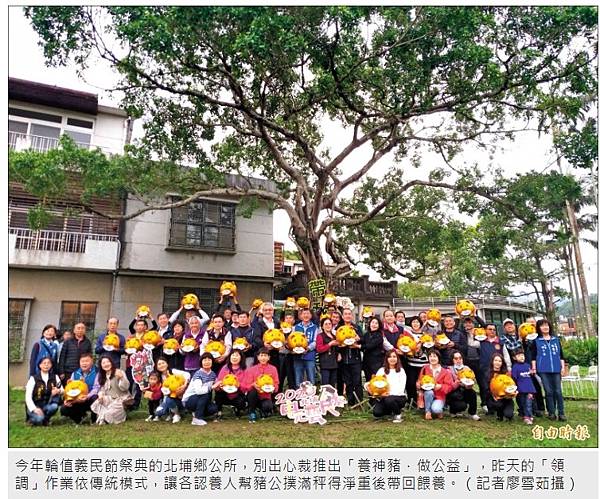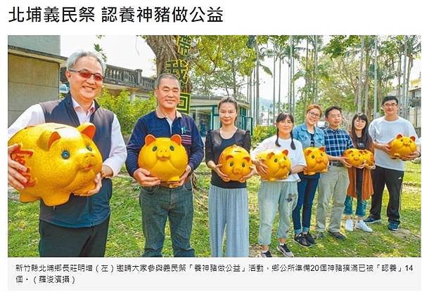 睽違15年的義民祭輪值回大隘聯庄,北埔鄉公所今天舉辦另類的「中元藝民祭」,上午的神豬撲滿大賽,55組「領調」單位不僅把撲滿餵飽飽,並為撲滿巧思裝扮,上演創意進場秀。客委會副主委范佐銘和北埔鄉長莊明增等人一起手持象徵性刀具殺大豬,之後進行獻供儀式,頒獎表揚愛心單位,將撲滿所得將捐給當地社福機構和學校。