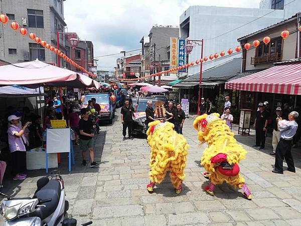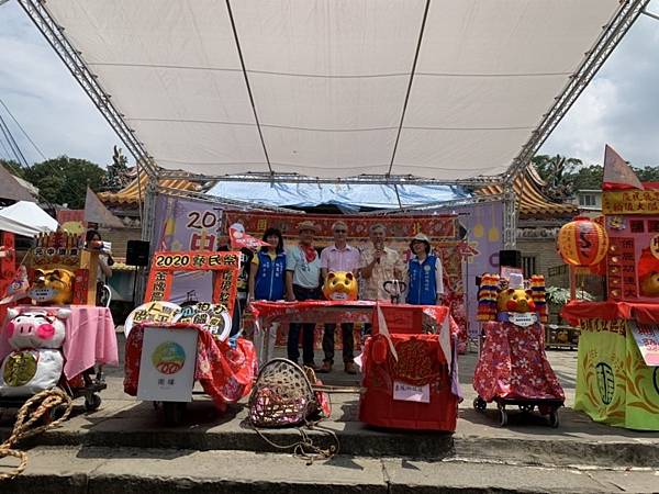 新埔義民廟前豎燈篙 北埔公益神豬撲滿大賽、扮妖怪踩街