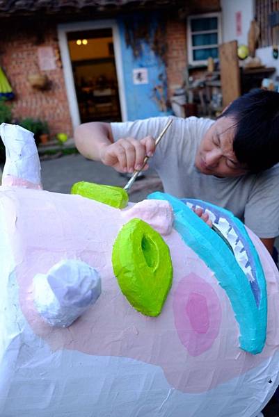 〔記者廖雪茹/新竹報導〕新埔褒忠亭義民廟15聯庄祭祀活動,今天在廟坪廣場豎起燈篙,今年輪值的大隘祭典區推出另類的「北埔中元藝民祭」,首度舉辦神豬撲滿大賽應響環保做公益,下午北埔老街更展開一場扮裝踩街嘉年華,吸引許多民眾粉墨登場同歡,化身民間傳說中的妖怪!
