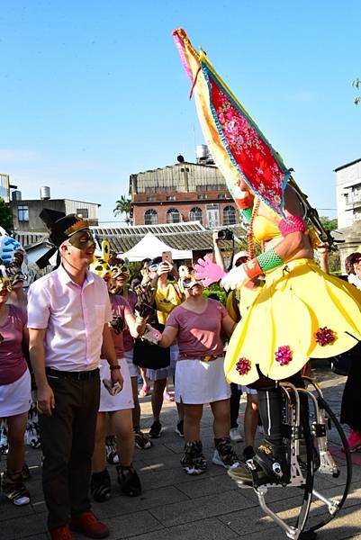 下午登場的扮裝踩街嘉年華,社區、幼兒園與表演團體,紛紛以妖怪和傳統民間傳說為主題扮裝,打扮成虎姑婆、暗八仙、山妖和精靈們、動物妖怪、紅衣小女孩等,4點起穿梭老街巷弄遊行,許多民眾也加入行列。