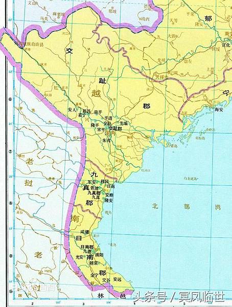 南越國是在秦朝南海、桂林、象三郡基礎上建立起來的國家,其建國初期疆域和秦朝該三郡的轄區相當。前179年之後,趙佗通過財物贈送的方式令閩越、夜郎、同師等國一度臣屬於南越國,但南越國並未真正占有這些國家的領地。[67]西漢滅掉南越國之後,在南越國領地的基礎上建立了南海、蒼梧、鬱林、合浦、交趾、九真、日南七個郡,所以南越國後期的疆域應該和西漢該七郡的轄區相當。傳統的看法認為,秦平南越時,即占有今越南中、北部地區,南越國的後期疆域和前期相比沒有很大的變化。但近代開始也有學者認為,秦平南越時,未占有今越南中、北部的部分地區,該區域為南越國期間擴展的疆域。[68]