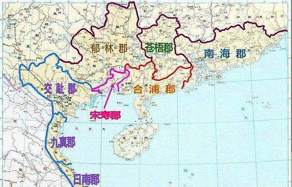 公元前110年,漢武帝喺平定南越國之後,將南越國嘅領地設置咗南海、蒼梧、鬱林、合浦、交趾、九真、日南等七個郡。