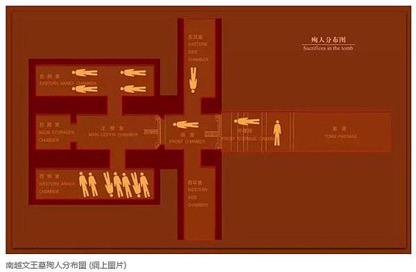 南越王陵墓是迄今發掘的嶺南地區規模最大、随葬品最豐富的一座漢墓。該墓具有“前朝後寢”結構,其設計就是爲了死者冥間的王侯生活而備。其前室象徵墓主人生前的朝堂,東耳室爲燕樂場所,西耳室爲庫藏之所,墓主安放在中部的主室。東側室中殉葬夫人,模擬生前的後宮。⑦ 該墓雖然不是很大,但設計的布局模仿其生前宮室,體現墓主在冥間享受王者至尊待遇的意識。