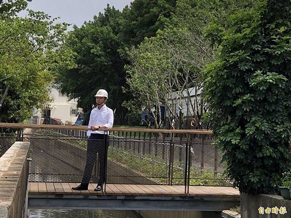 市長林智堅回憶在汀甫圳抓魚蝦是他童年成長回憶,但後來水圳環境日趨雜亂,市府克服數十年來難題,終於變身為友善步行綠廊。(記者蔡彰盛攝)