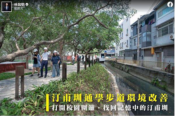 林智堅表示,打造友善步行環境空間,是他上任以來重要的施政目標。近年來市府積極向中央爭取經費,陸續改造公園、廣場、人行道等公共空間及環境景觀,逐步實現「步行城市」目標,汀甫圳通學步道完成後,市民可從舊城區或火車站,步行至新竹公園、動物園,再沿著博愛街通往十八尖山;博愛街、學府路沿線各學校師生、家長亦可沿著汀甫圳往來通行,周邊居民更是增加許多休憩空間。