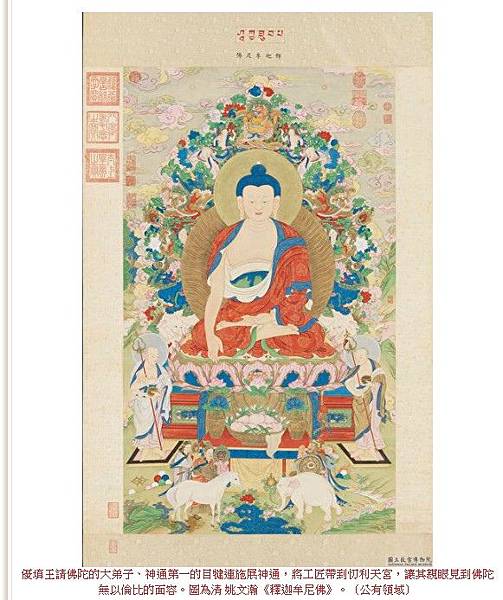當佛陀從天宮返回來到王宮精舍時,此旃檀木雕像竟起身迎接佛陀,佛陀對它說,「汝於未來世,大作佛事,我滅度後,我諸弟子,以付囑汝。」這尊雕像就是印度各國供奉的佛陀真身雕像的鼻祖,許多小國的佛像都是從此佛像繪圖仿製的。這也表明,最早的佛像出現在佛陀涅槃前,而隨著佛法的廣傳,佛陀造像也出現在多國,帶給信眾信心和鼓勵。