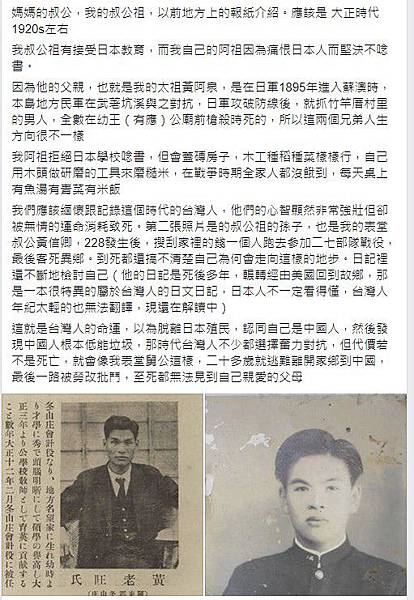 (後記:感謝陳怡如小姐和黃豪凱先生,如果沒有陳怡如小姐和其母親對歷史的敏銳度與黃豪凱先生憑藉個人的力量盡力保存史料,如此精彩卻又哀傷的台灣人共同記憶,將永遠覆蓋在遺忘的灰燼中!) 《廖建超專欄》被遺忘的二七部隊參謀長-黃信卿(下) | 芋傳媒 TaroNews