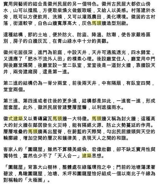 徽派建築-以馬頭牆、小青瓦最有特色,形成青瓦白牆