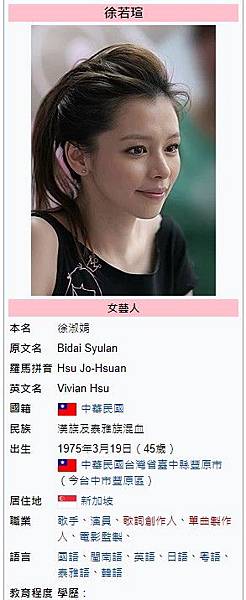 徐若瑄「我是台灣人,也是中國人」/大陸影視圈欲封殺的 55 名台獨藝人之一/徐若瑄則回應:我媽媽是高山族泰雅美女,爸爸是廣東梅縣來的 @ 姜朝鳳宗族 :: 痞客邦 ::