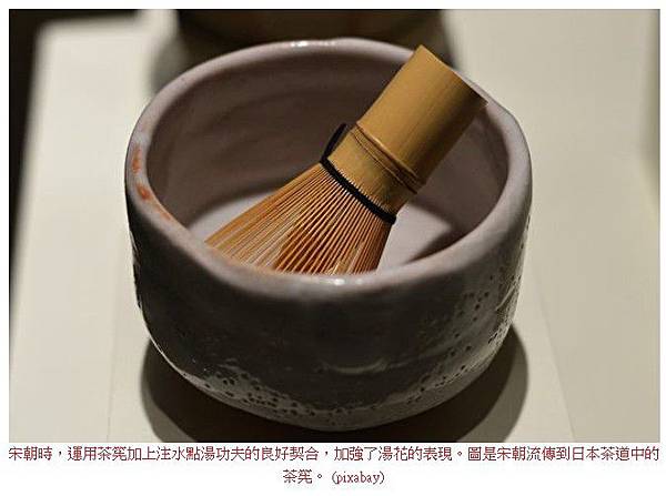 宋朝時,運用茶筅加上注水點湯功夫的良好契合,加強了湯花的表現。圖是宋朝流傳到日本茶道中的茶筅。 (pixabay)