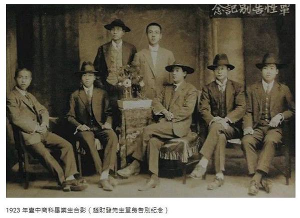 1923 年臺中商科畢業生合影(趙財發先生單身告別紀念)