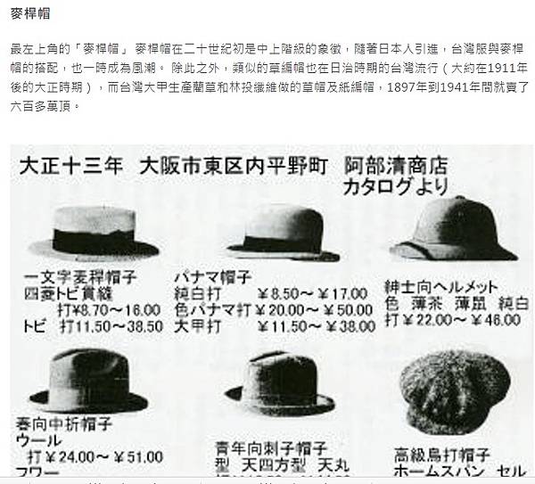 陳柔縉寫的台灣摩登老廣告裡面有一則談到日本殖民台灣時期的帽子,