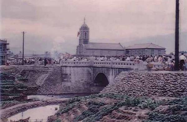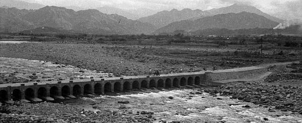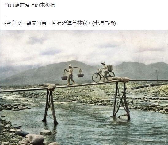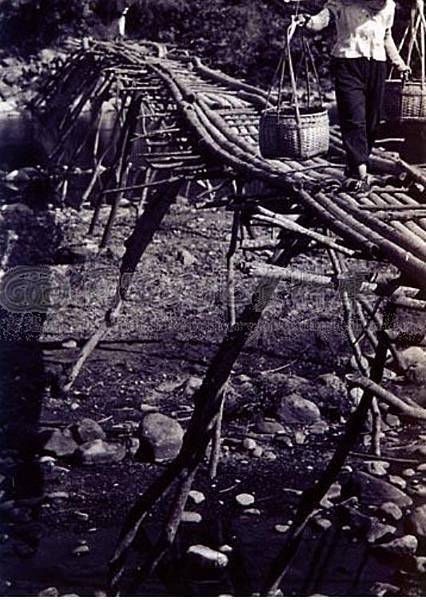 上坪軟橋-麻竹橋應是民國四十年代的照片,場景在軟橋進去點燥樹排通往對面水頭排的竹木便橋