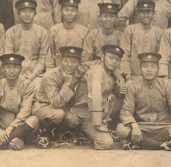 每一派出所所在地,得設一保甲壯丁團(遇有特殊情形時,也可設二團以上),一個聯合壯丁團的人數約20名至60名,本張照片內共有約五十幾名壯丁。壯丁團的團員是由保甲區域內17歲以上未滿50歲身體強壯、品行方正的保甲男子中選拔出來的,而獲選的男子若無正當理由不得推辭。因此壯丁團員的加入是強迫的。