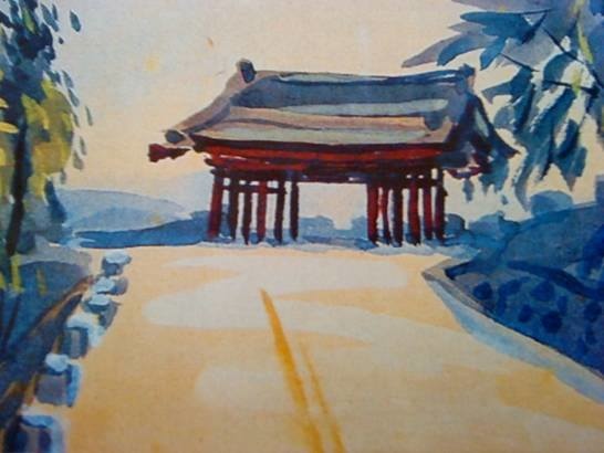 -竹東高中最著名的紅門,原先是神社廢墟前的唯 一建物,因廢墟處要建禮堂,所以蘇校長千辛萬苦也要把它遷移到操場入口。但原先建物的屋頂,為「檜皮葺」製成,相當厚實。一拆,即報銷。所以遷移後,改用日式瓦頂