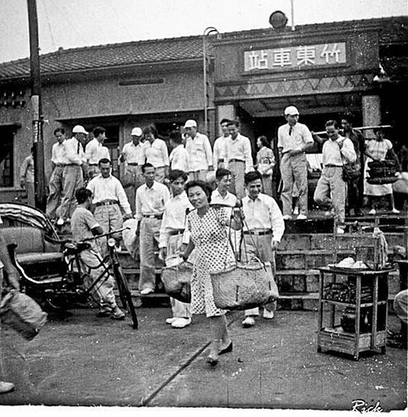 民國四五十年代清晨的竹東火車站前,一群六家國小老師們走出車站,到竹東參加活動。挑菜的婦女也正走出車站,站前有三輪車以及販賣油條杏仁茶的擔子,好不熱鬧。(取材於Rick網站)