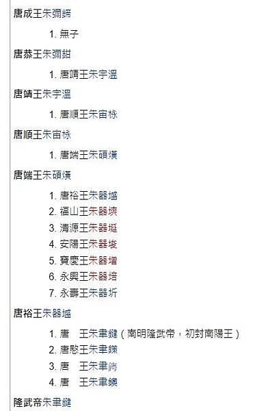 以下按照帝系及藩王世襲列舉明朝諸王,也可以見各藩王世系表連結。