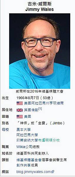 吉米·多納爾·威爾斯(英語:Jimmy Donal "Jimbo" Wales,或譯衛詹美[2][3][4],1966年8月7日-)是一名美籍企業家。他是維基百科的創始人之一,現為維基媒體基金會理事會榮譽主席,同時擁有網路代管公司Wikia[5][6]。