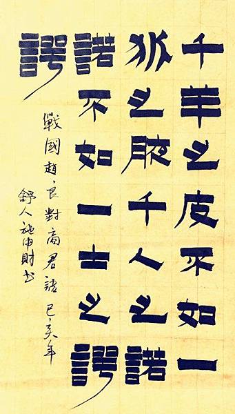 識文:千羊之皮,不如一狐之腋。千人之諾諾,不如一士之諤諤。