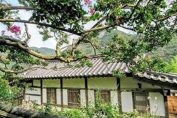 5座書院中,我一訪再訪仍念念不忘的,是位於安東市境內世界遺產河回村附近的屏山書院。如今來到河回村的游客,若是尚有余興,大可乘車循一條鄉間公路前往屏山書院逗留片刻,卻不知河回村內還有一條土路,穿過村頭稻田蜿蜒入山。步行其中如從山陰道上行,俯瞰洛東江,它緩緩流淌,你行行停停,仿佛順水行舟,山川自相映發,使人接應不暇。約莫一小時后,方才抵至這座建於1613年的書院前。屏山書院因對岸山嶺如畫屏而得名,與其他書院規制大體相近,但特別的環境顯得此地格外疏朗開闊。日暮時分,登上晚對樓,放眼望去,江水微漾泛起金波,對岸崖壁光影流離,一派風光頗得杜詩“翠屏宜晚對,白谷會深游”的意境。