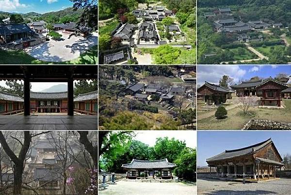 這座遺址產位於大韓民國的中部及南部,由九個書院組成,代表朝鮮王朝的新儒家學院 (公元 15-19 世紀)。學習、尊崇學者、與環境互動,是韓國書院的基本功能,也表現於書院的設計之中。書院依山或旁水而建,有利於欣賞大自然,修養身心。涼亭式的建築用意在於方便與自然景觀連結;這些書院說明了來自中國的新儒學在韓國的風土條件下適應的歷程。